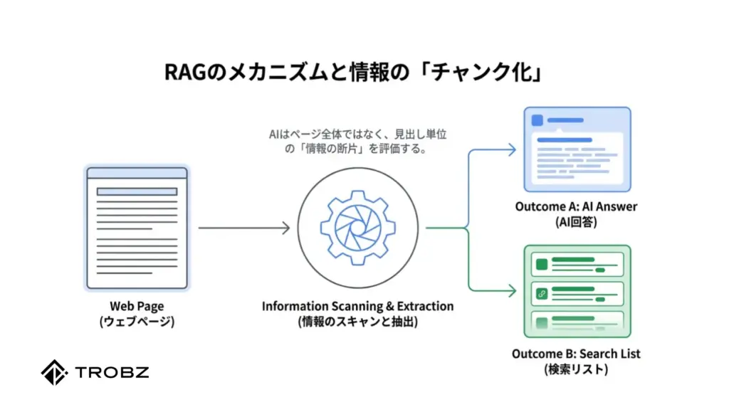 面白いことに、AIはページ全体を評価するのではなく、セクション単位の正確性を重視する傾向があります。そのため、見出し一つひとつが独立した回答として機能しているかどうかが、選ばれるかどうかの分かれ目となります。