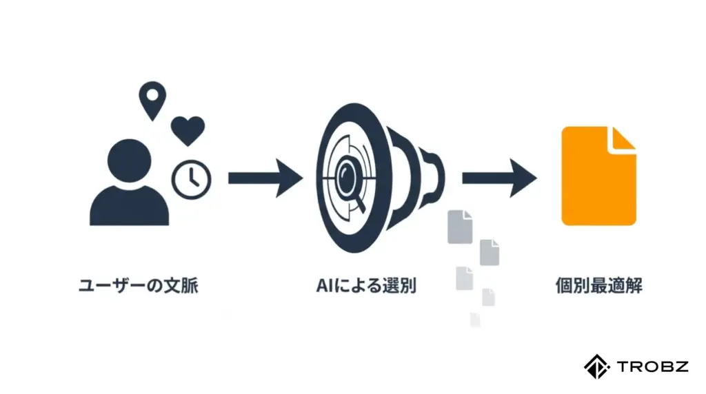 これまで、SEOの目標は「誰が検索しても上位に表示されること」でした。しかし、AIがユーザーの検索履歴や嗜好、現在地などを深く学習するパーソナライズ化が進むことで、検索結果は個々人で全く異なるものになります。GEOの観点では、万人向けのコンテンツではなく、特定のターゲットに対してAIが「この情報はあなたに最適です」と太鼓判を押すような情報の提示が求められます。