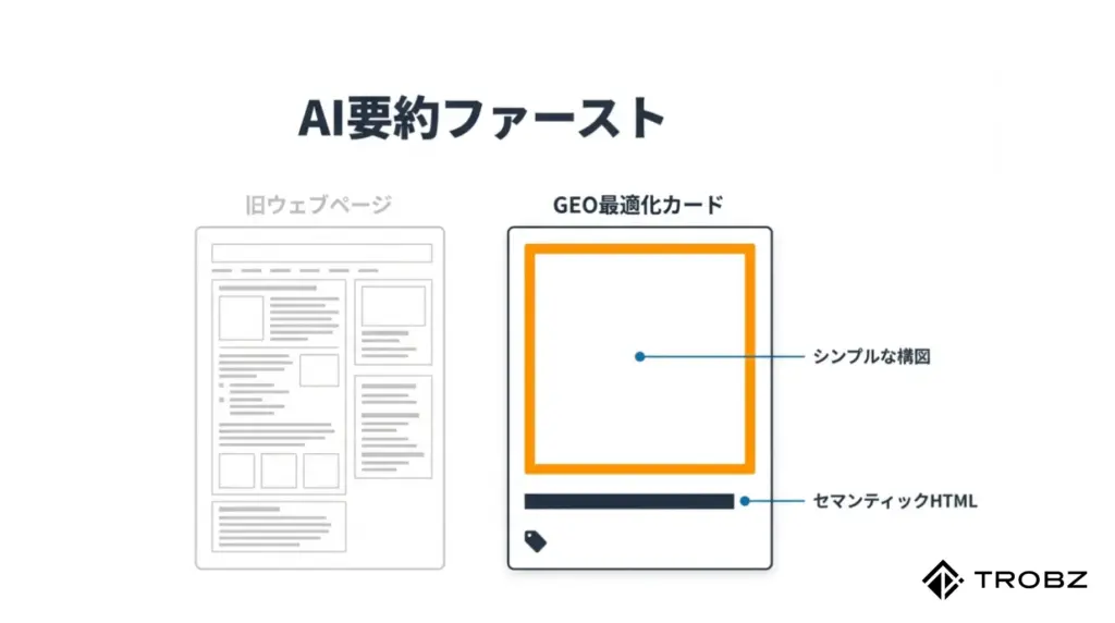 AIはページを上から下までスキャンしますが、重要な情報がどこにあるかをタグ付けされた構造で示されることを好みます。デザインのための複雑なコードを排し、意味論(セマンティクス)に基づいたシンプルなHTML構造を維持しましょう。