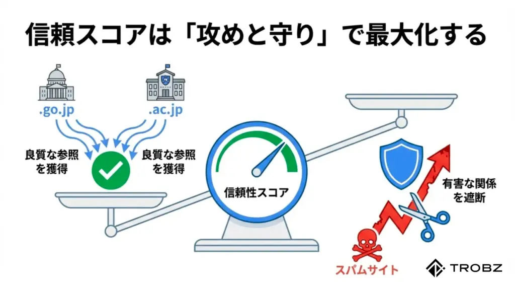 「良いリンクを集める」ことには熱心でも、「悪いリンクを断ち切る」ことに関しては無頓着なWeb担当者が多すぎます。LLMはWeb上の情報をネットワーク(つながり)として認識しています。もし、あなたのサイトがスパムサイトや質の低いリンク集から大量にリンクされていたら、AIはどう判断するでしょうか?
